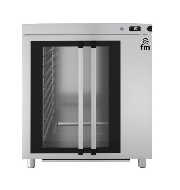 Las fermentadoras o armarios fermentadores son equipos indispensables en cualquier obrador, panadería, pastelería o pizzería que trabaje con masas frescas. Permiten mantener condiciones estables y homogéneas durante todo el proceso de levado, asegurando resultados constantes y una calidad final profesional. Existen distintos rangos de máquinas, desde las fermentadoras compactas y utilitarias, con capacidad para unas pocas bandejas, hasta los armarios de fermentación controlada, con regulación avanzada de temperatura y humedad, que pertenecen a una categoría superior. En la mayoría de fermentadoras se trabaja con bandejas de 60 x 40 cm, el formato estándar en panadería y bollería. Algunos modelos admiten bandejas más pequeñas, como 40 x 30 o 43 x 33 cm, pensadas para adaptarse a hornos concretos. Las capacidades más comunes van desde las 8 bandejas en modelos compactos hasta las 20 bandejas en armarios de suelo, que a menudo pueden integrarse de forma modular con hornos del mismo fabricante para optimizar espacio y flujo de trabajo.